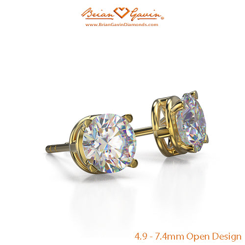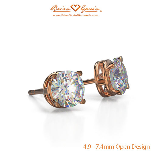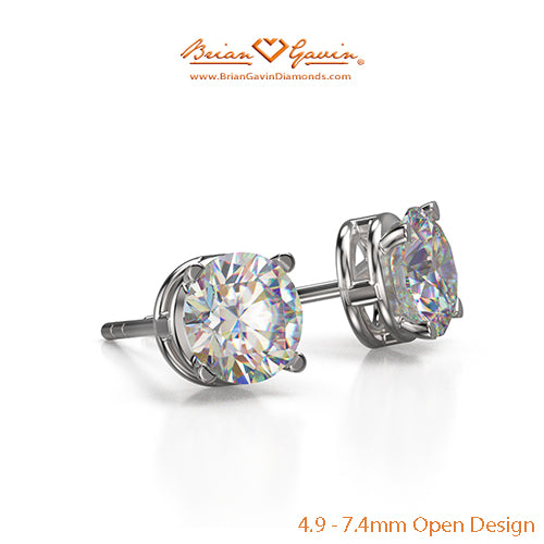 Our Signature 4 Prong Earring Settings With Friction Backs. Price Is For Settings Only. Center stones from 3.8mm-4.8mm will have a closed design, stones from 4.9mm-7.4mm will have an open design, please reference the photos for examples. Select Your Diamond From Our Extensive Online Diamond Inventory.